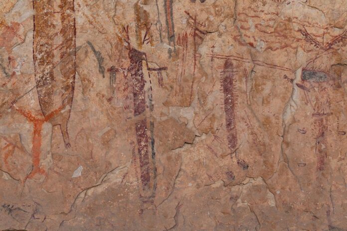 Pendant quelque 175 générations, des chasseurs-cueilleurs-pêcheurs ont arpenté les abris-sous-roche au flanc des falaises qui bordent la rivière Pecos, à la frontière entre l’actuel Texas et le Mexique. Ils y ont laissé les traces dessinées d’une vision du monde remarquablement stable dans le temps. Sur une zone de 8 000 kilomètres carrés de canyons, ils ont orné plus de 300 parois de peintures rupestres élaborées. C’est ce que révèlent de nouvelles datations et analyses stylistiques, selon lesquelles cette pratique, qui aurait commencé il y a six mille ans environ, aurait perduré pendant au moins quatre mille ans.