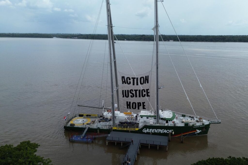 En venant à Belem, au Brésil, en amont de la trentième Conférences des parties sur le climat (COP30), Emmanuel Macron a croisé un nom bien connu des Français. Jeudi 6 novembre, le président de la République visite un des bateaux de la caravane fluviale « Iaraçu », un projet scientifique franco-brésilien, amarré sur le rio Guama au sud de la ville. A quelques encablures, les militants de Greenpeace ont installé une banderole « Macron : good cop or bad cop ? » L’interpellation est placée à l’arrière du navire de l’ONG dont le nom s’étale en grandes lettres blanches : Rainbow-Warrior.
