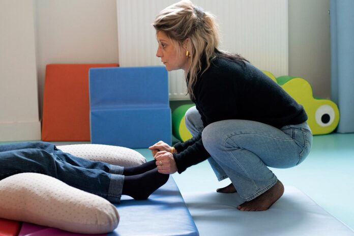 Son ventre proéminent tend son chemisier ocre, et elle laisse tomber à ses pieds la ceinture élastique qui maintient ses lombaires, mises à l’épreuve par la grossesse. Psychologue en Bretagne et déjà mère d’un fils de 4 ans, elle a souffert, quinze mois après la naissance de ce dernier, d’une sévère dépression du post-partum.