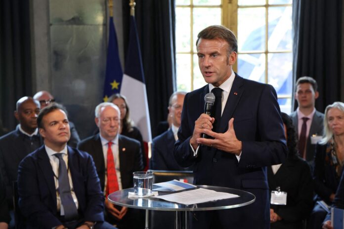 Emmanuel Macron s’adresse à des étudiants lors d’un événement sur le programme de bourses « Lafayette Fellowship », à New York, le 23 septembre 2025.