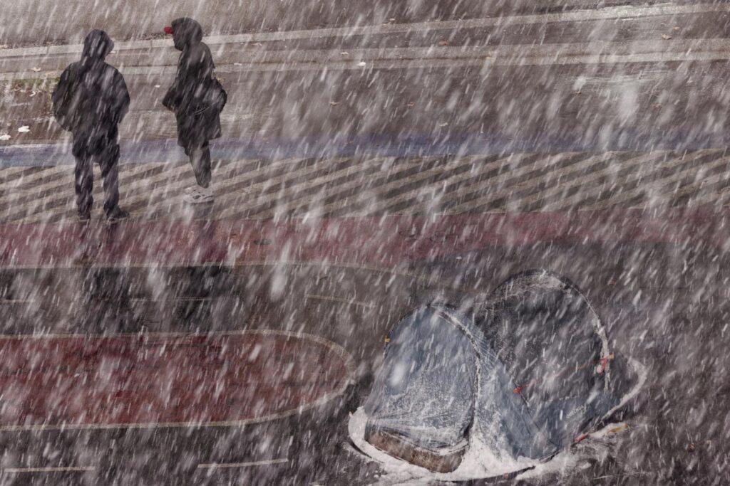 Il neige en cet après-midi du 5 janvier, à Paris. Madeleine ne peut pas le savoir, elle passe la journée sur les quais du métro. Couvertures achetées au marché, bonnet, gant, doudoune, la sans-abri de 70 ans s’est préparée le mieux qu’elle pouvait pour cet hiver. C’est son premier dans la rue. « Ça fait un moment qu’il n’avait pas fait froid comme ça. Le matin, je ne peux pas bouger les doigts, je suis gelée. »