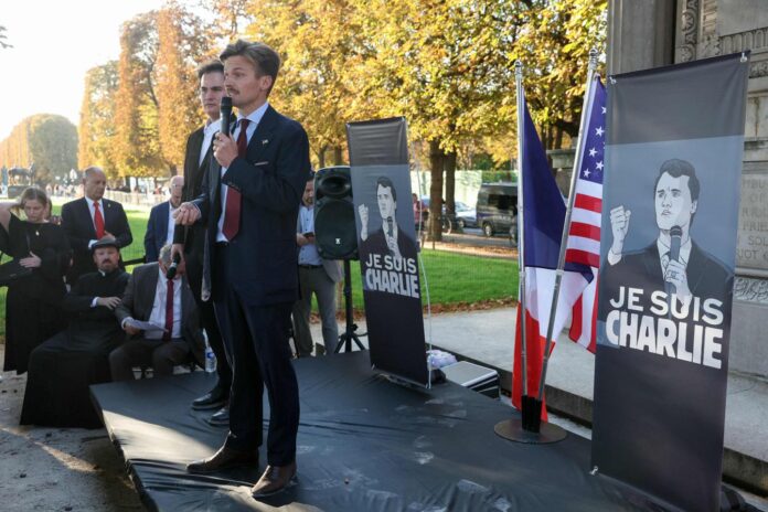 Ils le jurent : Charlie Kirk est leur « martyr », leur « héros ». Vendredi 19 septembre, environ 250 personnes se sont rassemblées sous le soleil de fin septembre, au pied de la statue équestre de Lafayette, cours la Reine, dans le 8e arrondissement de Paris. Ils sont venus « rendre hommage » à Kirk, influenceur et figure influente du mouvement MAGA (Make America Great Again), assassiné le 10 septembre dans l’Utah. Et si les motivations du principal suspect, Tyler Robinson, 22 ans, restent encore floues, les personnes présentes en sont persuadées : c’est l’extrême gauche qui est à l’œuvre.