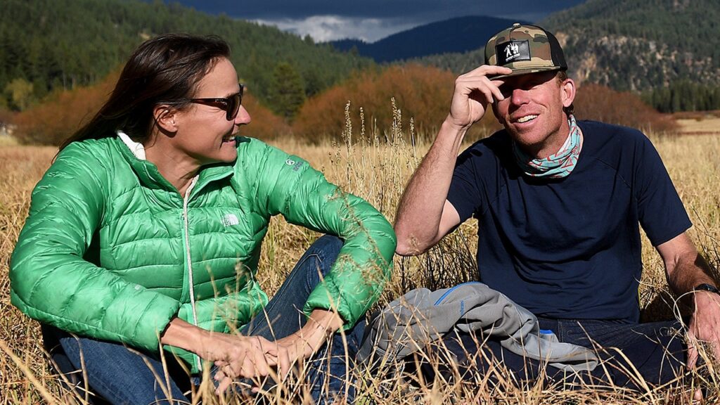 Ski mountaineers Hilaree Nelson and her partner Jim Morrison pose for a portrait in a meadow near Lake Tahoe in Squaw Valley, California, on Oct. 19, 2015. (Jason Bean/USA TODAY NETWORK)