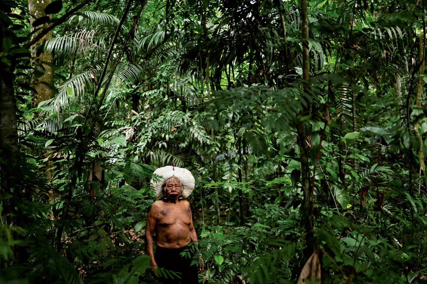 Le rideau se lève et le monstre sacré s’avance sur scène. Coiffé d’une parure cocar aux plumes dorées, arborant son légendaire plateau labial botoque, Raoni Metuktire s’assoit avec majesté et lève une main impériale, toisant du regard la petite foule qui l’applaudit debout. A près de 90 ans (son âge reste incertain), le chef kayapó n’a rien perdu de son charisme. Il demeure la personnalité indigène la plus connue et respectée au monde, le cacique des caciques, incarnant physiquement, et presque à lui seul, la lutte des Amérindiens du Brésil.