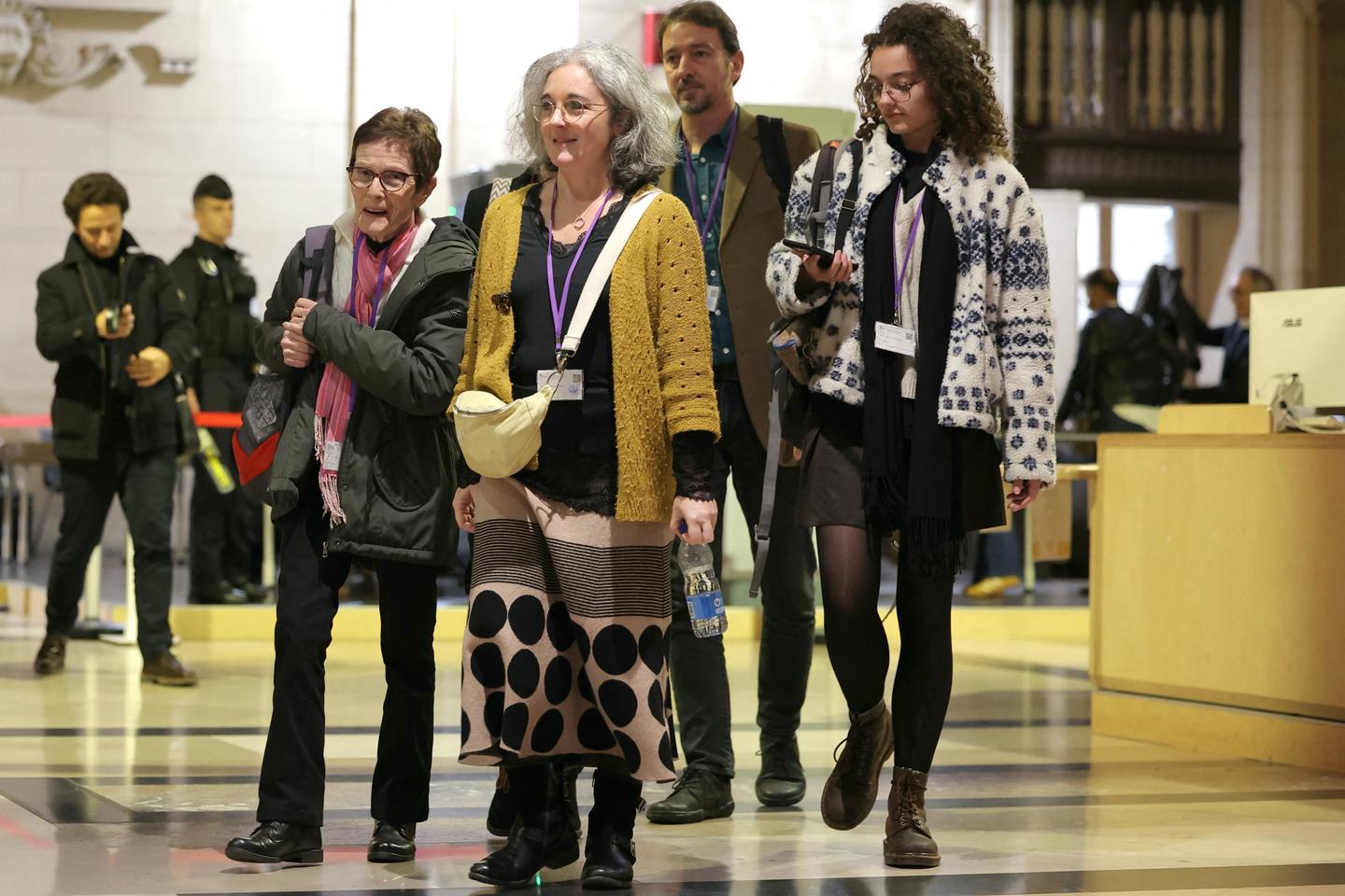 Gaëlle Paty, la sœur de Samuel Paty (au centre) et sa mère, Bernadette Paty (à gauche), au tribunal d’assises spécial de Paris, le 8 novembre 2024.