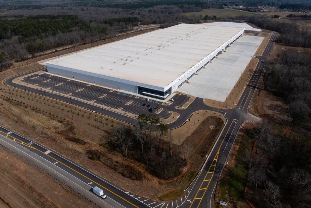 Un hangar industriel récemment acheté par la police de l’immigration américaine (ICE) pour être transformé en un centre de rétention pour migrants à Social Circle (Géorgie), le 10 février 2026.