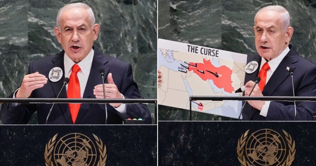 In a move typical of his UNGA speeches, the Israeli Prime Minister held a map of what he called the “curse of Iran’s terror axis.”