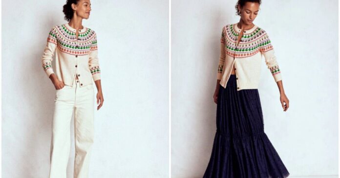 The design reimagines traditional Fair Isle patterns in muted, vintage-inspired shades, offering a modern twist on a timeless classic. With a straight, easy fit that falls between the waist and hip, it’s ‘roomy enough for layers’ while still maintaining a flattering shape.
