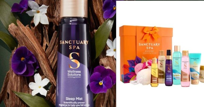 It contains products from The Sanctuary Spa, including the Aqua Serenity Body Scrub, the Aqua Serenity Body Wash and the Golden Sandalwood Natural Oils Melting Pearls Body Butter. The body butter is a blend of shea butter and also has pearls of Moroccan argan oil, with a sandalwood scent, the Sanctuary says.