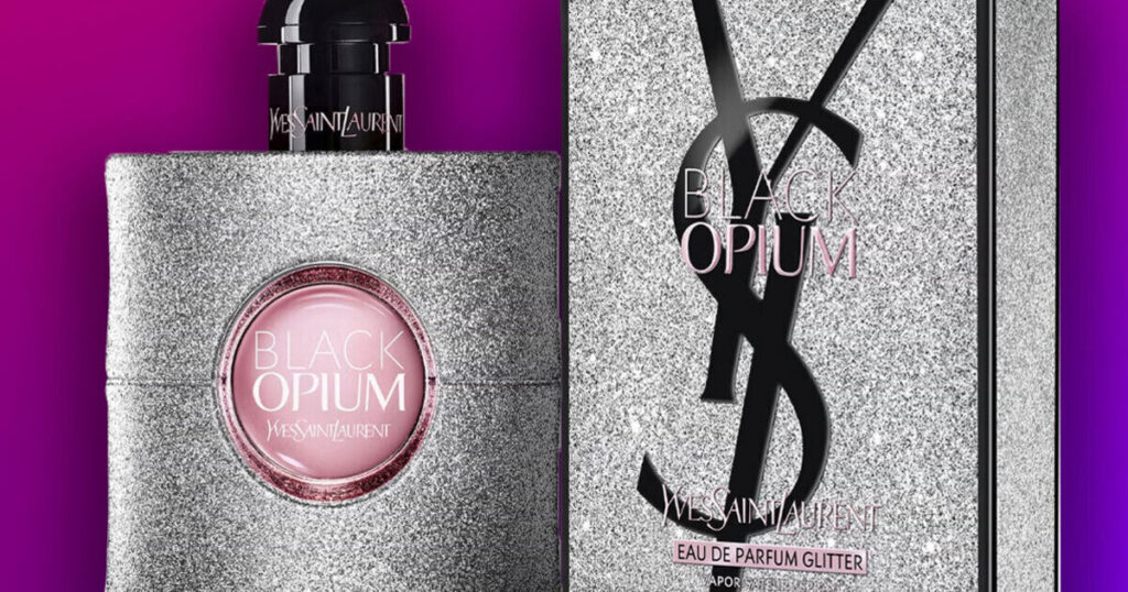 While the classic Black Opium is a blend of coffee and spice unfolding over a woody and vanilla base, the Glitter variation is described as a “sultry gourmand fragrance”.