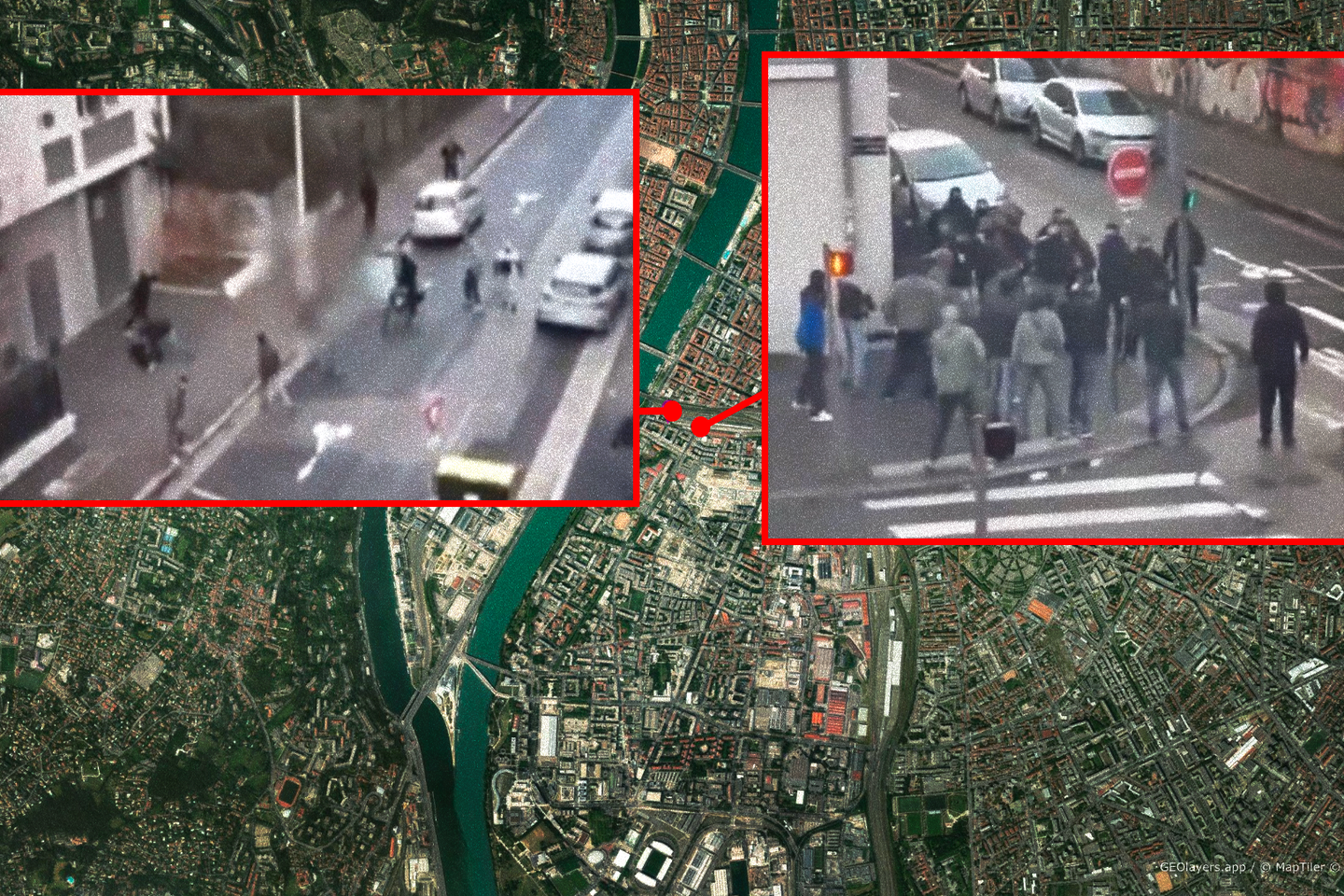 Le Monde a analysé et localisé une dizaine de vidéos, et les a mis en regard avec les déclarations du procureur de Lyon. Ces images permettent de retracer plusieurs étapes de la montée des tensions qui ont précédé l’affrontement mortel. Tout d’abord, des heurts ont lieu autour d’une manifestation du collectif d’extrême droite Némésis, venu en petit comité protester contre la tenue d’une conférence à l’Institut d’études politiques de l’eurodéputé de la France insoumise Rima Hassan. La violence prend ensuite une autre dimension : celle d’un affrontement armé, d’après des images diffusées par plusieurs médias… jusqu’à ce que les protagonistes venus en soutien de Némésis fuient, laissant derrière eux trois jeunes hommes, dont Quentin Deranque, qui a subi de nombreux coups au sol. Il se relève mais meurt plusieurs heures plus tard à l’hôpital.
