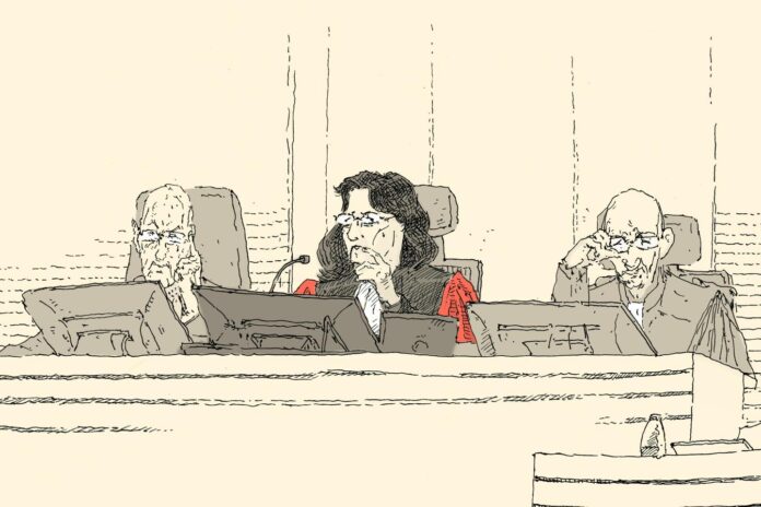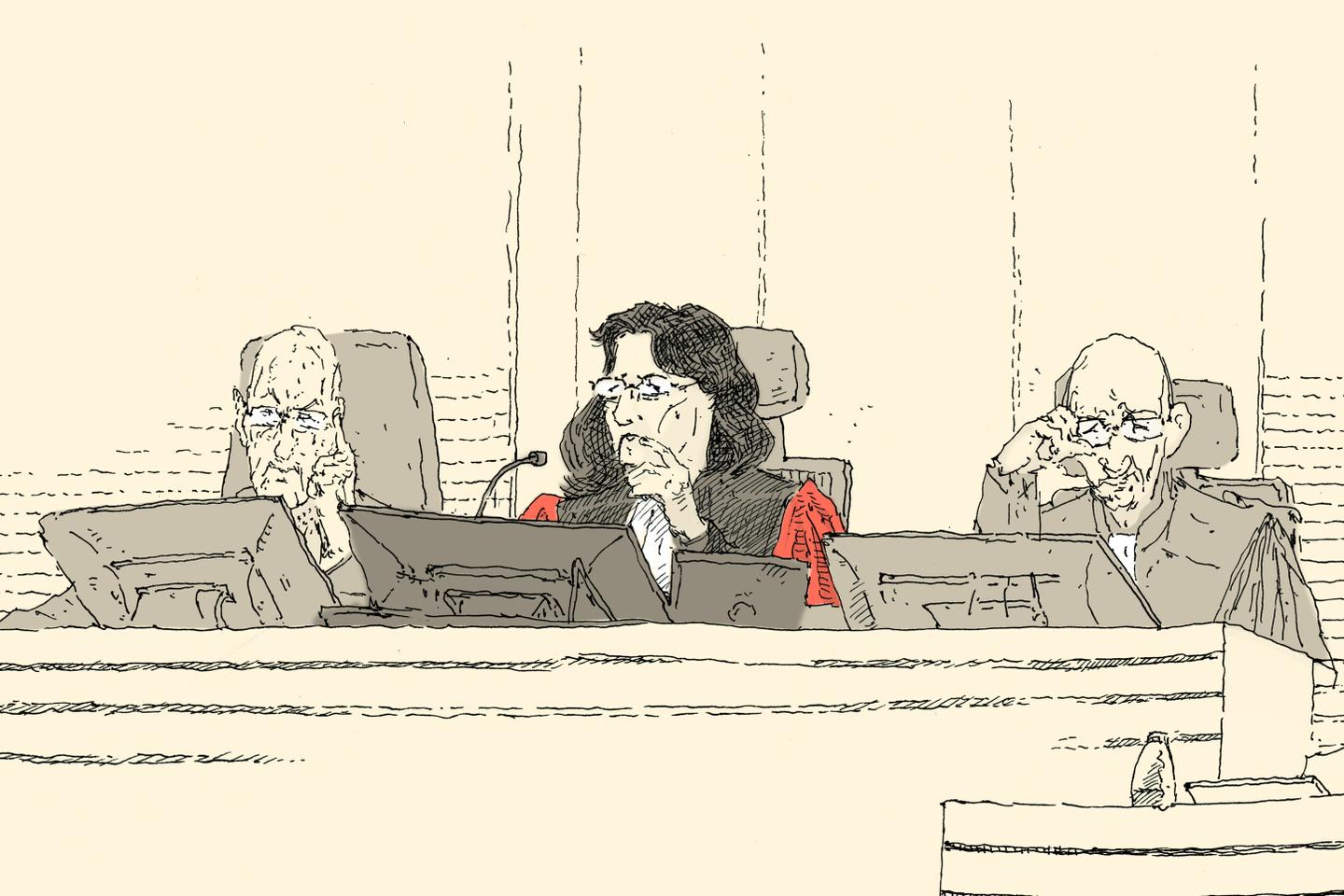 La cour, avec la présidente, Hélène Ratinaud, au procès de Cédric Jubillar, à la cour d’assises d’Albi, le 24 septembre 2025.