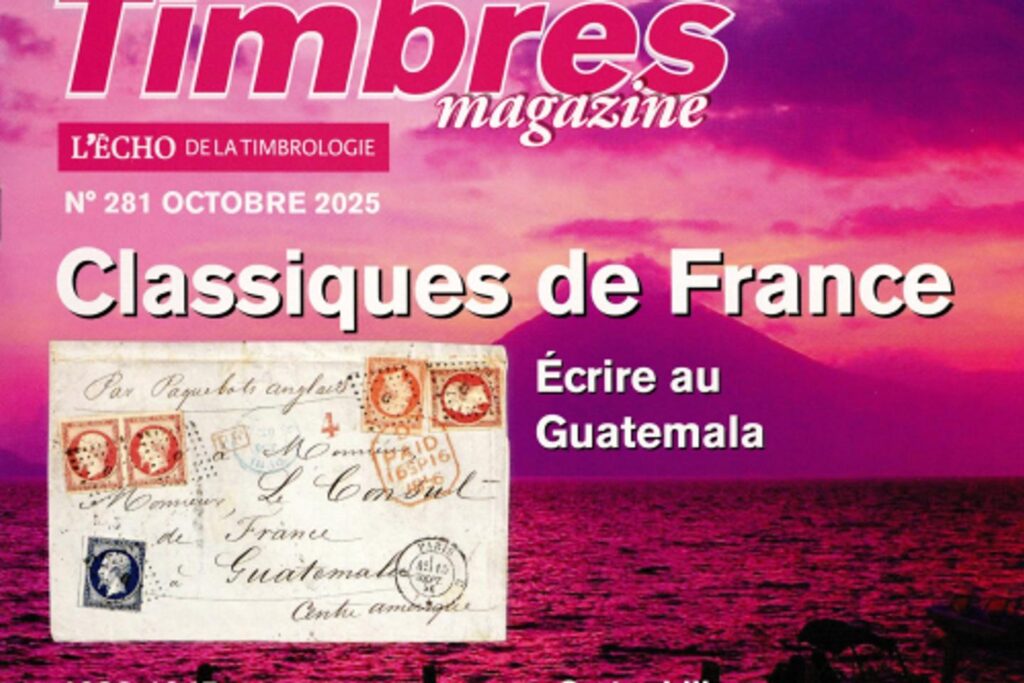 « Timbres magazine », octobre 2025, n° 281, 108 pages. En vente en kiosques (6,90 euros), ou par correspondance (Yvert et Tellier, 2, rue de l’Etoile, CS 79013, 80094 Amiens Cedex 3). Tél. : 03-22-71-71-87. Courriel : sbelvalette@yvert.com. Rédaction en chef : michelmelot@timbropresse.fr. Version numérique ici.