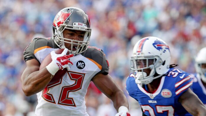 Tampa Bay Buccaneers running back Doug Martin (22) runs the ball while being defended by Buffalo Bills defensive back Nickell Robey (37) during the first half at Ralph Wilson Stadium on Aug. 23, 2014. (Timothy T. Ludwig/USA TODAY Sports)