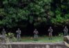 Des soldats lors d’une manifestation contre la hausse du prix du diesel à Calderon (Equateur), le 9 octobre 2025.