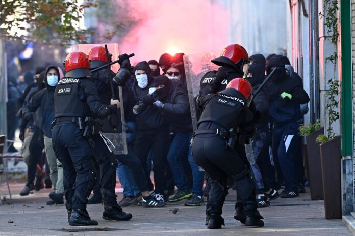 Alors que le 50ᵉ anniversaire de la mort de Franco approche, des dizaines de militants se sont rassemblés dimanche sur une place centrale de Vitoria, avant que des contre-manifestants encagoulés n’apparaissent, à l’occasion de la fête nationale.