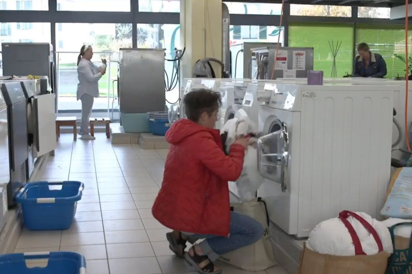 Capture d’écran d’une vidéo diffusée sur le site de la RTS, montrant une buanderie collective en Suisse.