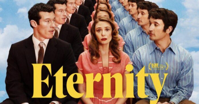 Miles Teller and Elizabeth Olsen star as Larry and Joan, an elderly married couple of 50 years who die within a week of each other. Finding themselves at “the Hub”, now at the younger ages they were most happiest at in life, they’re each assigned an Afterlife Coordinator to help decide which eternity they’d like to live out forever. Each one has a different theme, from the Beach and Mountains to Clown World and Weimar World (now with no Nazis). Once you’ve decided and leave the Hub, you can never leave that eternity. Any attempt to do so results in being cast into the “Void.” The only problem is, Joan’s first husband, Luke (Callum Turner), who died in the Korean War, has been waiting seven decades in the Hub for his wife. And so she’s left with the awful predicament of choosing eternity with the handsome soldier of her passionate youth, or her husband of 50 years, with whom she had kids and grandchildren.
