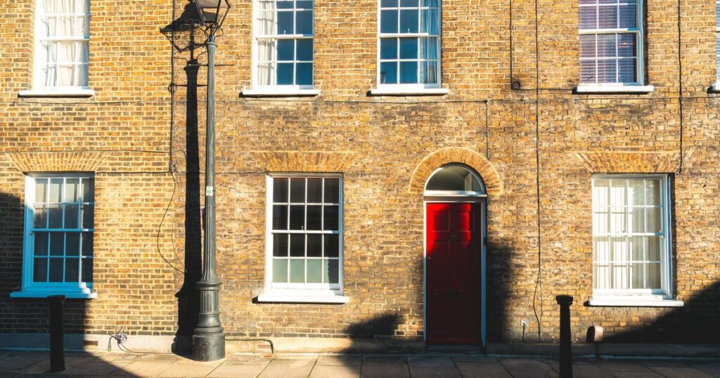 The windows in the front had “been painted shut” so were all replaced, apart from the middle window on the second floor – directly above their red front door – which was a different size.