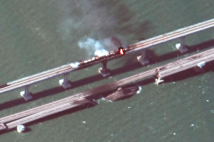 L’explosion, survenue huit mois après le début de l’offensive russe à grande échelle en Ukraine, avait été revendiquée plus tard par Kiev. Inauguré en 2018 par le président russe, Vladimir Poutine, le pont, long de 19 kilomètres, est, pour le pouvoir russe, l’un des symboles de l’annexion, en 2014, de la péninsule ukrainienne de Crimée.