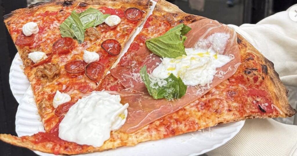 The long waits at L’Industrie are no surprise. Massimo Laveglia, the Tuscan-born chef behind it, has been perfecting New York-style pies since opening the first store in Williamsburg in 2017. His pizzas are, as Time Out reports, beautifully blistered and crisp, topped with Italian classics like Prosciutto di Parma and creamy burrata.