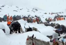 As you progress, the bouquet will fill out and it’s important to keep a loose grip — don’t strangle them as it becomes harder to twist. The flower stems will likely sit at different angles below your hands but don’t worry — we can trim those later.