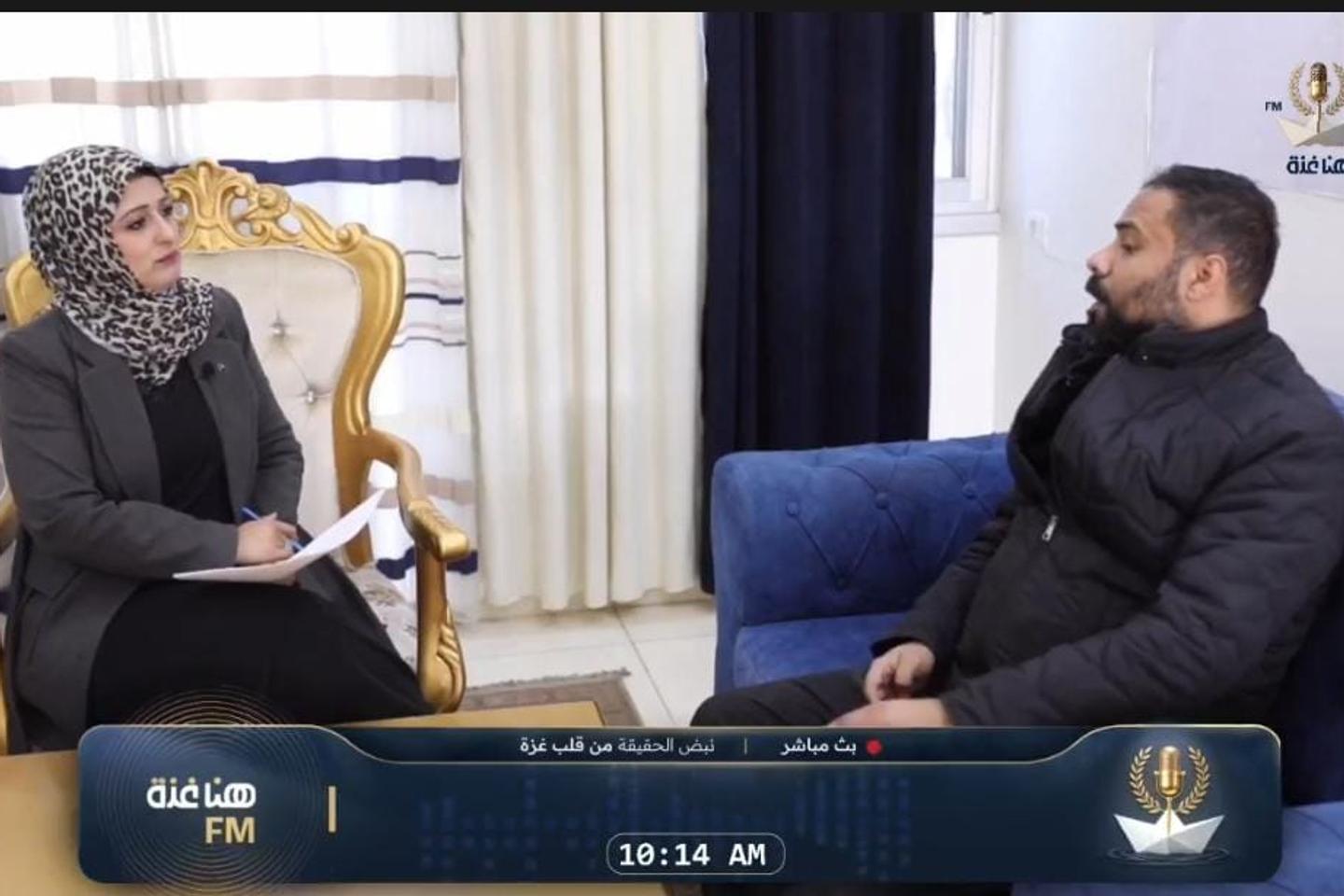 Extrait d’une interview filmée de la radio Hona Ghazza, présentant la journaliste Sylvia Hassan et Abdullah Sharsha, président du conseil d’administration de l’Association Génération, le 15 février 2026.