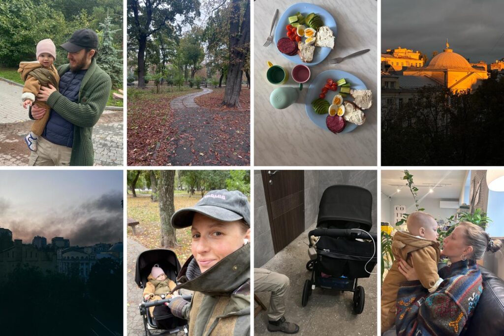 Nous sommes revenus de nos vacances dans les Carpates. Comme d’habitude, le trajet du retour a été stressant. Je n’arrêtais pas de surfer sur Telegram pour avoir une idée des attaques potentielles et écouter les déclarations des forces armées. Enormément de drones ciblent les trains de nuit… Une fois à Kyiv [Kiev en ukrainien], la joie de nos retrouvailles avec Dima, le père de Marian, a été très vite interrompue par une grosse attaque de drones et de missiles.