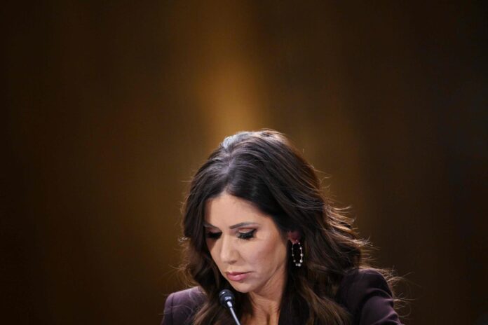Kristi Noem est la première membre du cabinet à quitter ses fonctions depuis le début du second mandat de Donald Trump. Le président aurait pris sa décision après des auditions parlementaires de Kristi Noem, lors desquelles elle a été mise en difficulté sur l’attribution d’un important contrat public.