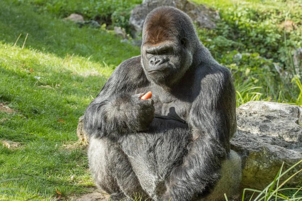Appuyé à la cloison de l’enclos, Asato déguste un rameau de charme, tranquille. A 34 ans, le grand dos argenté du zoo de Beauval (Loir-et-Cher) ne souffre d’aucune rivalité. A lui, les premières rations alimentaires. A lui aussi, le monopole de la reproduction. Les six autres mâles de la serre des gorilles du plus grand parc animalier d’Europe (35 000 animaux, 800 espèces) n’ont pas leur mot à dire. Les quatre femelles non plus. Pas loin de lui, Sheila, 38 ans, et son dernier-né attendent qu’il ait terminé son repas. Sheila, sa favorite parmi les quatre femelles de son « harem », dispose de quelques privilèges. Mais même elle ne se risquerait pas à épouiller le dos argenté. « On ne touche pas un roi », note à voix basse Delphine Leroux, directrice adjointe animalière du parc, qui œuvre auprès des primates depuis vingt-cinq ans.