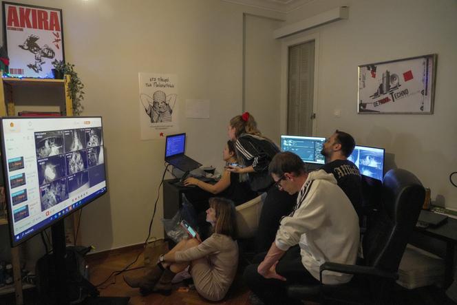 Des militants grecs propalestiniens de l’initiative « March to Gaza Greece » surveillent la flottille humanitaire Global Sumud pour Gaza, à Athènes, le 1ᵉʳ octobre 2025.