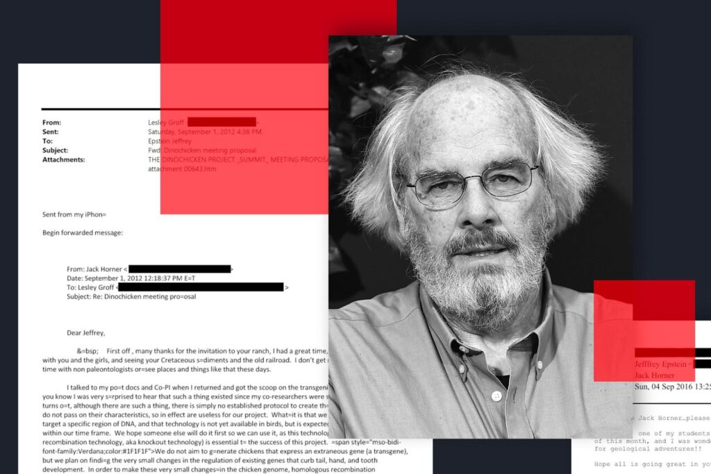Agé de 79 ans, Jack Horner reconnaît un « extrême manque de discernement » dans le fait d’avoir cherché à faire de Jeffrey Epstein un donateur pour son projet scientifique « Dino-Chicken ». Il s’agissait de tenter de « désévoluer » la poule pour faire réapparaître certaines caractéristiques des dinosaures, dont elle descend (dents, griffes, queue). Le Monde a tenté de le joindre, sans succès, mais, dans un communiqué adressé à la presse américaine, le scientifique reconnaît avoir été au courant des poursuites engagées contre Jeffrey Epstein et de sa condamnation en 2008 pour avoir fait appel à des prostituées mineures. Il affirme que, s’il avait su qu’il s’agissait d’un prédateur sexuel, il n’aurait pas sollicité son appui financier.