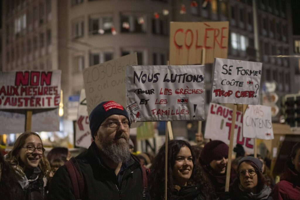 Un slogan, parmi d’autres. « Ce n’est pas au peuple de payer les cadeaux faits aux riches. » Le 18 novembre, ils étaient plus de 20 000 à battre le pavé à Lausanne, quatrième ville de Suisse et capitale du canton de Vaud, pour dénoncer les coupes budgétaires décidées par le gouvernement cantonal de centre-droit dans les services publics – dans la nation alpine, la plupart des fonctions régaliennes (éducation, santé, fiscalité) sont dévolues aux cantons. Une mesure en particulier ulcère les manifestants vaudois : la diminution de 0,7 % du salaire du corps enseignant alors qu’en même temps celui des sept conseillers d’Etat (ministres) devrait passer de 260 000 à 300 000 francs suisses (322 000 euros) en 2026.