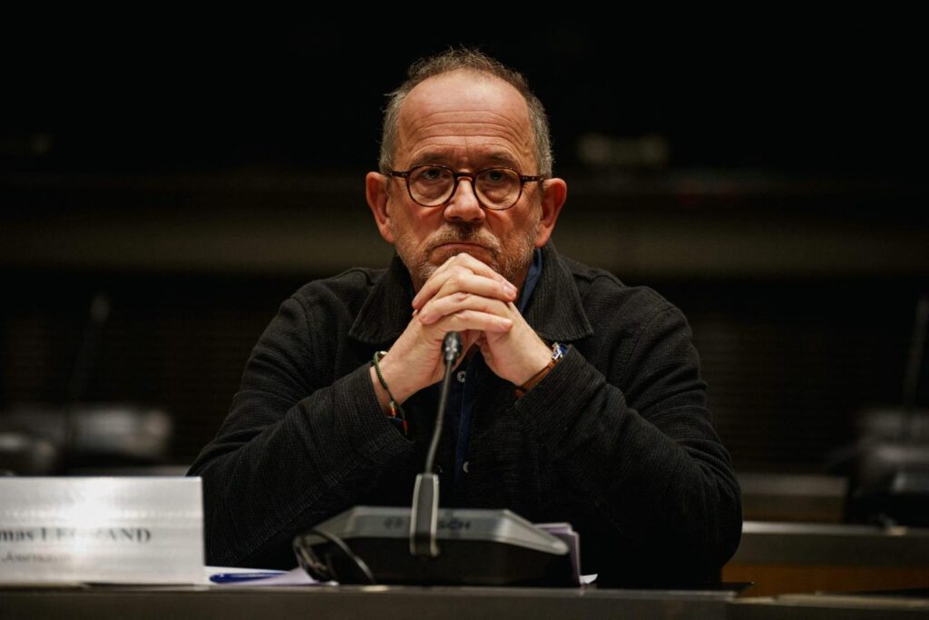 Le journaliste Thomas Legrand, lors de son audition devant la commission d’enquête sur l’audiovisuel public à l’Assemblée nationale, le 18 décembre 2025.