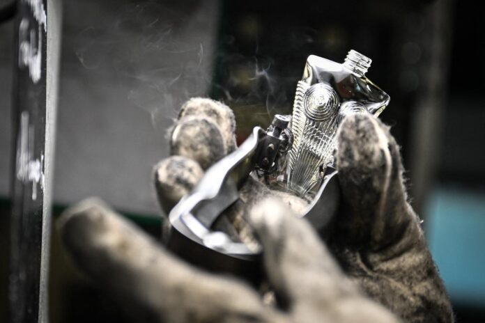 Sur la chaîne de production de l’usine du groupe Pochet, à Hodeng-au-Bosc (Seine-Maritime), le 28 mars 2025.