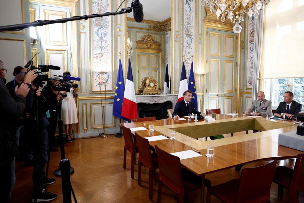 Le président français, Emmanuel Macron, lors d’une vidéoconférence avec plusieurs partenaires européens et arabes sur la situation au Moyen-Orient, à l’Élysée, le 15 septembre 2025.