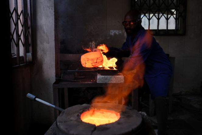 Au cœur de l’ancien royaume ashanti, dans le sud-ouest du pays, le métal jaune est considéré comme un alter ego du soleil. Depuis le VIIe siècle, il est extrait des terres fertiles bordant les cours d’eau qui sillonnent la forêt tropicale. Kumasi, la grande ville régionale, en est devenue un passage obligé. Par une brûlante journée de juillet, une échoppe dissimulée dans la cour d’une grande maison, derrière un portail noir, accueille un client discret. De la poche de son pantalon élimé, il sort de l’or brut d’un sachet en plastique. Un employé des lieux le chauffe au chalumeau, en élimine les impuretés. En quelques minutes, le client tient une pépite entre les mains.