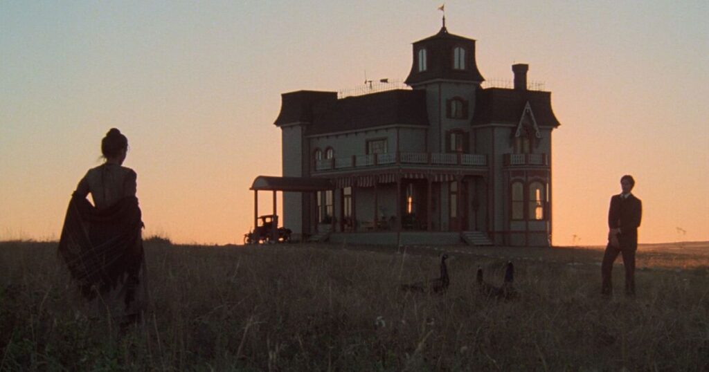 Set in 1916, the story follows Bill and Abby, lovers who travel to the Texas Panhandle to work harvesting crops for a wealthy grain farmer. Bill persuades Abby to claim the fortune of the dying farmer by tricking him into a sham marriage. The film received positive reviews on its original theatrical release. Its natural-light photography was widely praised. It also won an Academy Award for Best Cinematography, along with three nominations for the score, costume design and sound. Malick also won the Best Director Award at the Cannes Film Festival, where the film competed for the prestigious Palme d’Or.