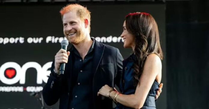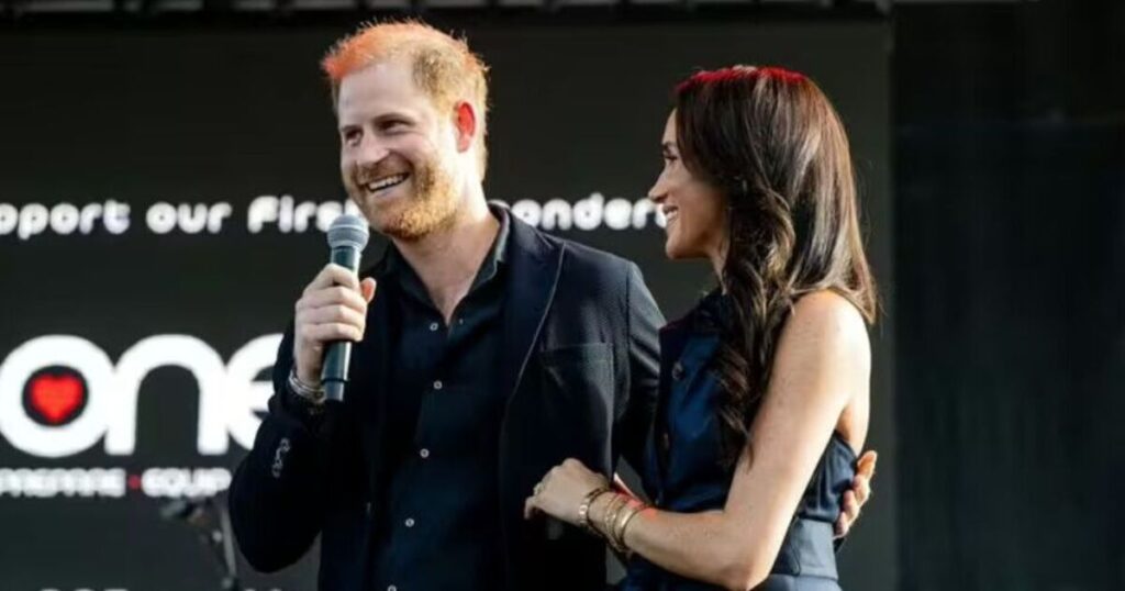 Her piece from the Cabana 2025 collection was crafted in navy cotton-blend, detailed with an open back, oversized patch pockets, and a sash tie to highlight her waist. Relaxed yet polished, the look aligned effortlessly with Prince Harry’s sharp tailoring.