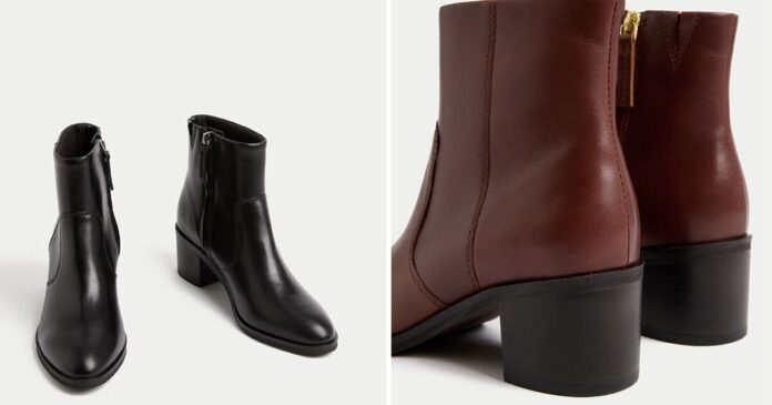 The zip-up ankle boots, priced at £60, are described as a “versatile choice” for smart-casual outfits. Thet have 5.8cm block heel for added height, as well as M&S’s Freshfeet padding that claims to combat odour throughout the day.