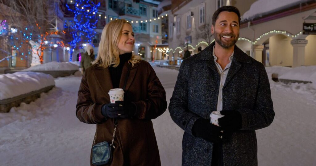 Netflix describes it: “A single parent (Alexandra Breckenridge of “Virgin River”) wears a disguise to land a Santa job at a cozy ski resort and falls for her charming new boss.”