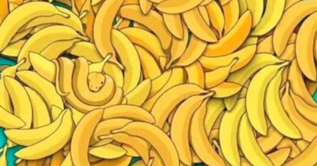 In the image above, you’ll see a sea of tasty bananas, but hidden amongst the heaps of yellow fruit is an animal camouflaged in plain sight. So, just how quickly can you spot it?