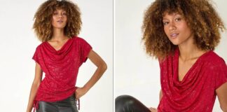Roman’s ‘sparkly’ red top perfect wearing with jeans or trousers