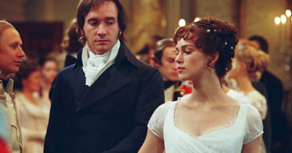 Pride and Prejudice is a period romance film directed by Joe Wright in his feature directorial debut. It is based on Jane Austen’s 1813 novel of the same name. The film features five sisters from an English family of landed gentry as they deal with issues of marriage, morality, and misconceptions. Keira Knightley stars as Elizabeth Bennet, while Matthew Macfadyen plays Mr Darcy, who falls in love with her. The film’s synopsis reads: “Elizabeth Bennett is a strong-willed yet sensible young woman. At a local ball, she encounters a wealthy young man, Mr Fitzwilliam Darcy, who is arrogant, and they develop an unusual relationship.”