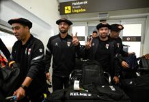 Mullah Abdul Ghani Baradar, the Taliban’s deputy prime minister for economic affairs, center, reviews honor guards during a military parade marking the third anniversary of the U.S.-led troop withdrawal at Bagram Air Base in Parwan province, Afghanistan, Wednesday, Aug. 14, 2024. (AP Photo/Siddiqullah Alizai)