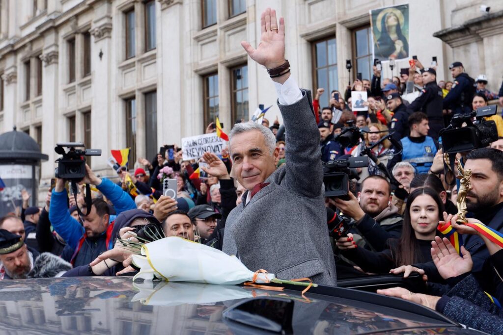Ils sont près d’une centaine, rassemblés sous le ciel gris devant la cour d’appel de Bucarest, ce 17 novembre. « Calin Georgescu est innocent ! », clament les manifestants en chœur, avant d’entamer une prière pour l’« unité nationale ». La foule s’agglutine sur les marches du bâtiment, certains diffusant les images en direct sur TikTok, tandis que des femmes s’impatientent, un bouquet de fleurs à la main. Tous attendent l’arrivée imminente de Calin Georgescu, l’homme qui avait créé la surprise en arrivant en tête du premier tour de l’élection présidentielle, le 24 novembre 2024. Le scrutin avait été ensuite annulé en raison d’irrégularités et d’une campagne massive sur TikTok, le tout entaché de soupçons d’ingérence russe.