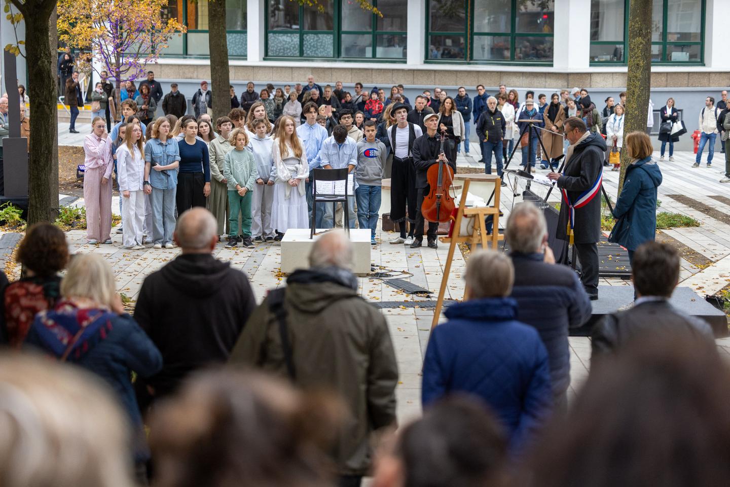 « Ce square est un hymne à la vie et au vivre-ensemble, un appel à ce dialogue si nécessaire dans notre monde d’aujourd’hui », a souligné Frédéric Leturque, maire centriste d’Arras. « Il dépasse la souffrance d’une famille, d’une communauté, d’une ville, pour appeler la conscience de chacun à lutter résolument contre toutes les haines. »