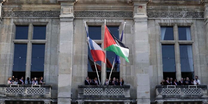 La bannière rouge, noire, blanche et verte devrait être exhibée au fronton d’autres mairies de la banlieue parisienne, telles Nanterre, Bagneux, Gennevilliers, Ivry-sur-Seine ou Corbeil-Essonnes. « Il ne s’agit pas d’un acte militant de longue durée », mais d’un « choix » fait au moment où le président Emmanuel Macron doit officialiser la reconnaissance par la France de l’Etat de Palestine lors d’une Assemblée générale de l’ONU, fait valoir auprès de l’Agence France-Presse le maire socialiste de Saint-Denis (Seine-Saint-Denis), Mathieu Hanotin.