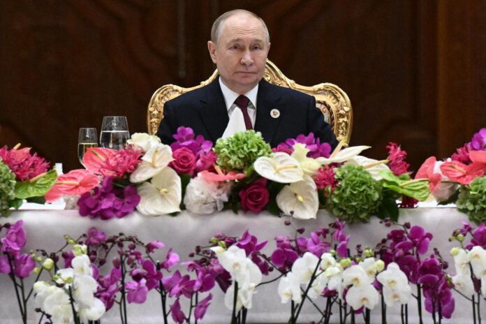 Photo diffusée par l’agence d’Etat russe Sputnik, du président russe, Vladimir Poutine, assistant à une réunion du Conseil des chefs d’Etat de la Communauté des Etats indépendants (CEI), à Douchanbé, le 10 octobre 2025.