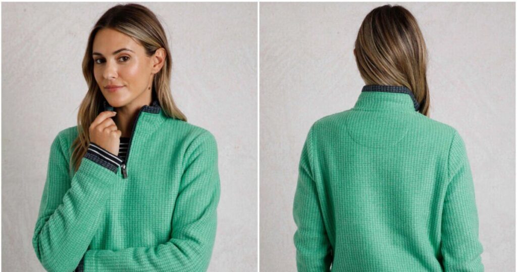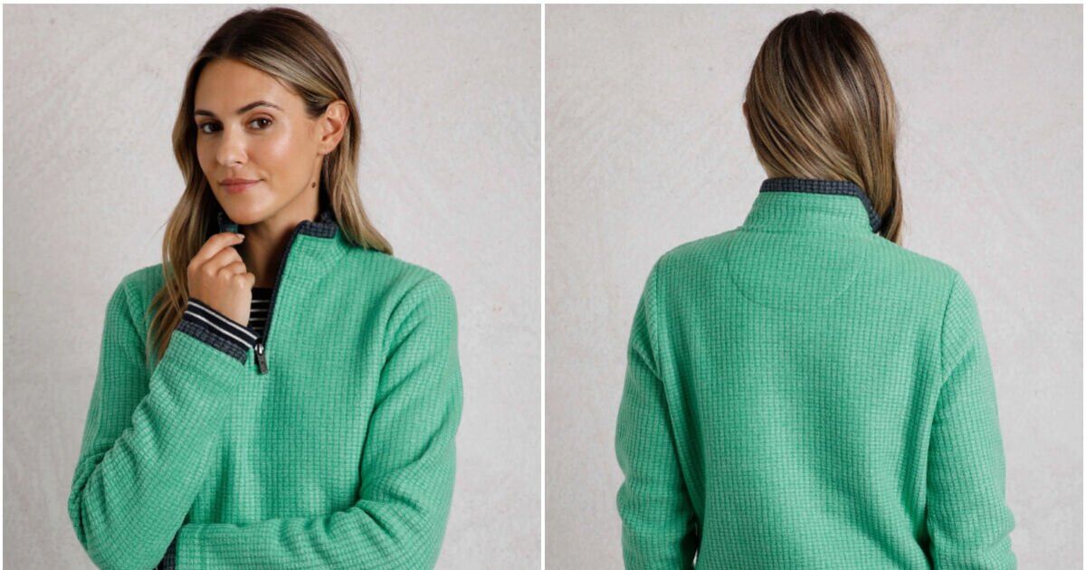 The fleece comes in 10 different colours, with contrasting detail on the cuffs and hem. Grass green, navy, and tarragon cost £30 (plus 22% off with code ‘ABF22’), but the rest – including hot coral, sky blue and ecru – are currently £42. Sizes run from 8 to 22, although some are sold out in certain colours.